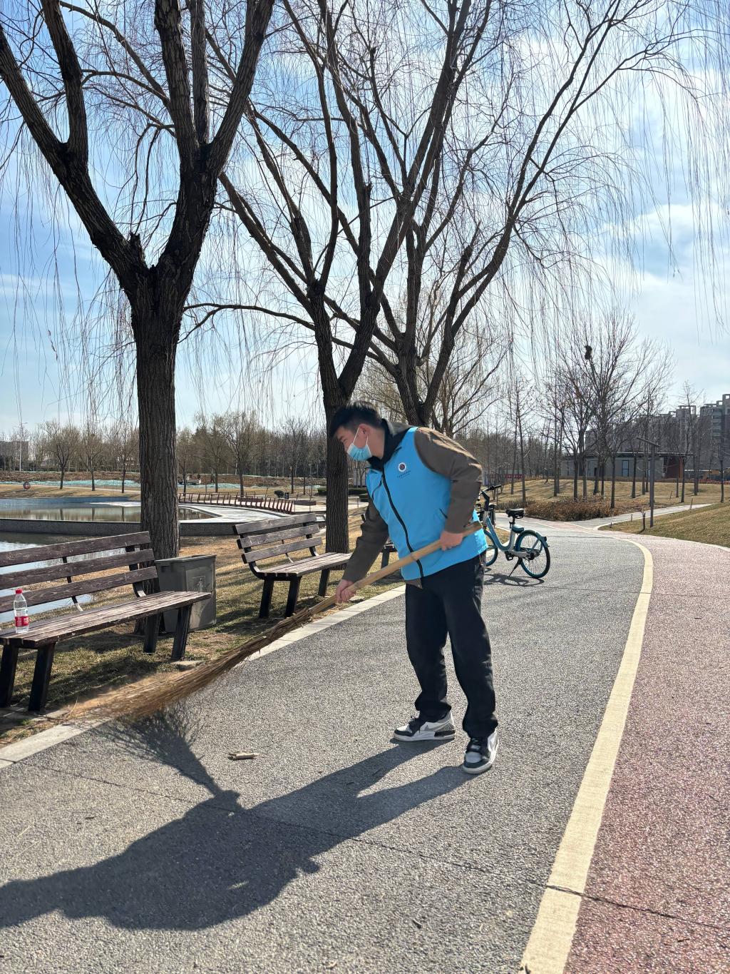 志愿服务队准时集合完毕,统一着装配发工具,在旗帜引领下有序来的龙子湖开展活动。志愿者们沿途清理废弃垃圾,相互协作,通过自己的努力为美化环境贡献自己的一份力量。志愿者们以实际行动践行志愿者精神,倡导“无痕出行”,为环保做出力所能及的事情。